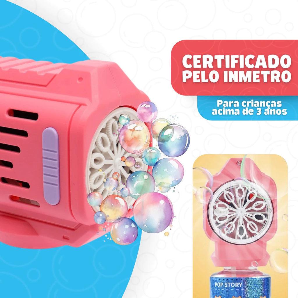 Com funcionamento simples, o lança bolhas dispara várias bolhas de sabão de forma contínua, estimulando a imaginação e a brincadeira ativa. Ideal para festas, parques, quintal ou momentos de lazer em família, proporcionando risadas e movimento para as crianças.