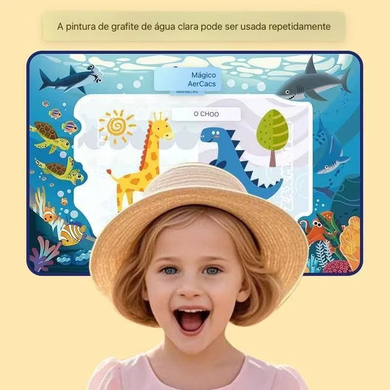 Com o Tapete de Água Mágico – Brinquedo Educativo Reutilizável com 3 Canetas. Uma forma divertida, segura e sem sujeira de incentivar o aprendizado por meio do desenho e da brincadeira livre.